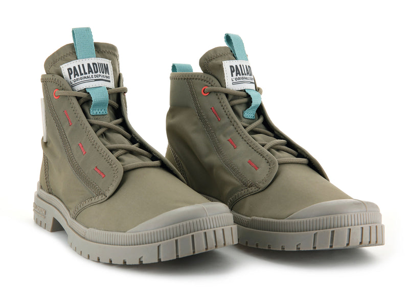 These lightweight Mid cut boots are a sporty version of the SP20, inspired by the best-selling Pampa Overlab. We've taken the best of the Travel Lite, like the loop lacing and contrasting trims, and combined it with the best of the S20 design, adding a breathable yet sturdy nylon upper and lock stitching finish. With its prominent Palladium branding including the rubber patch logo, this one is sure to become a new addition to the #uniformofthepeople.